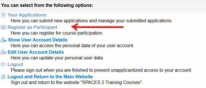 When you click the registration link, which will be published in the course description, you are directed to the online registration tool that guides you through the questions you need to fill in.